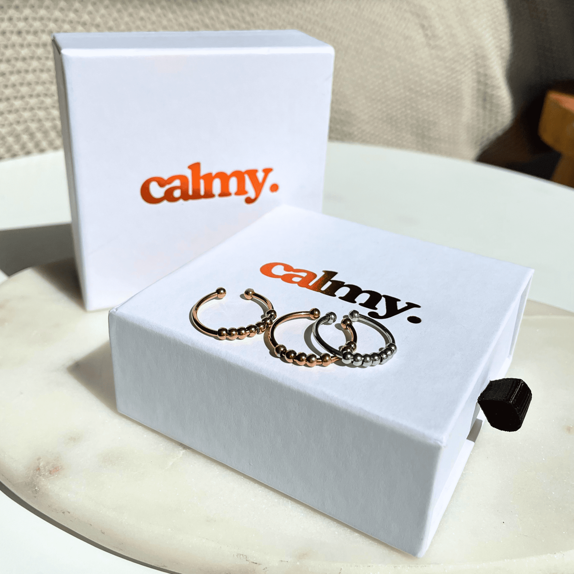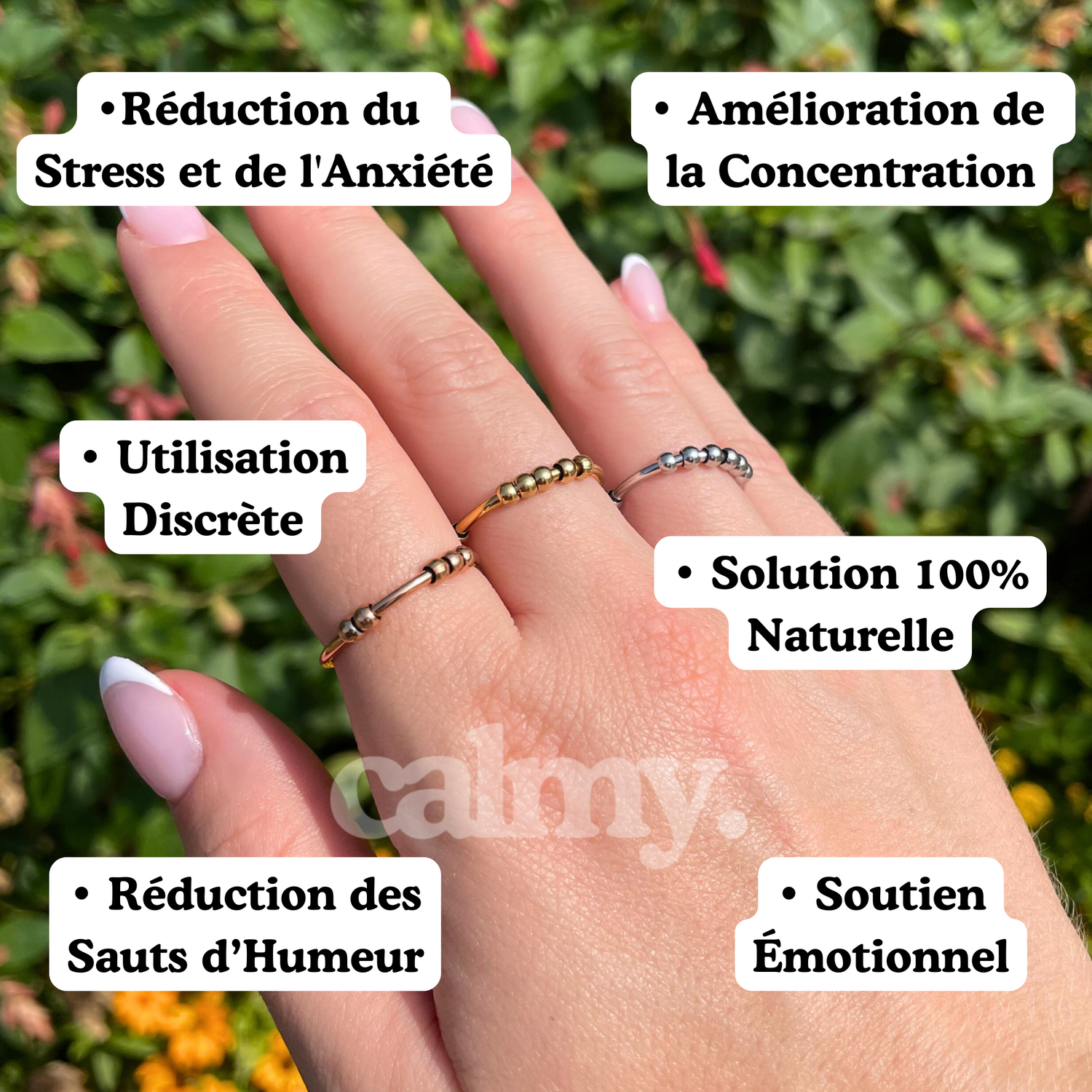 Les bagues anti-stress Calmy offrent un soulagement immédiat, en aidant à réduire le stress, l'anxiété et des habitudes comme se ronger les ongles.
