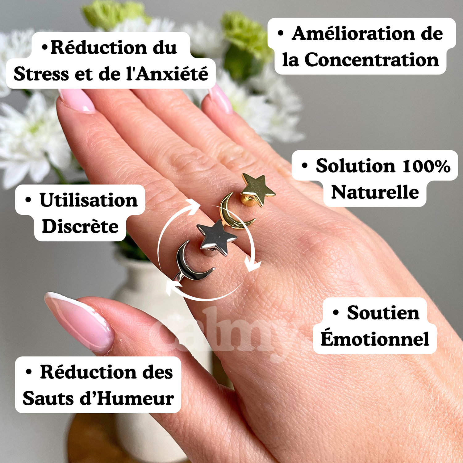 Les bagues anti-stress Calmy offrent un soulagement immédiat, en aidant à réduire le stress, l'anxiété et des habitudes comme se ronger les ongles.